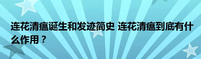 連花清瘟誕生和發跡簡史