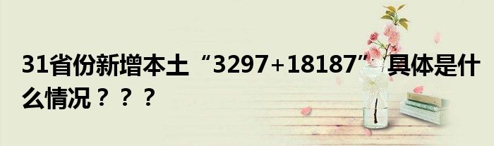 【31省份新增本土“3297+18187”】由于受全球第四波疫情的影響,特別是周邊國家及我國香港特別行政區疫情高位運行,使得我國“外防輸入”壓力特別大,一定要堅持落實疫情的“四早”政策,即早發現、早報告、早隔離、早治療,落實四方責任,把防控措施落到實處。