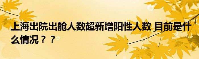 上海出院出艙人數(shù)超新增陽性人數(shù)