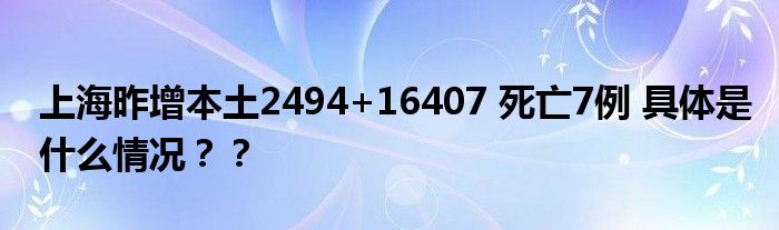 【上海昨增本土2494+16407 死亡7例】目前上海疫情形勢復(fù)雜嚴(yán)峻,上海疫情牽動國人的心,還沒徹底阻斷社區(qū)傳播,確診人數(shù)不斷上升,拐點(diǎn)未現(xiàn),根據(jù)最新疫情消息,上海昨增本土2494+16407 死亡7例。