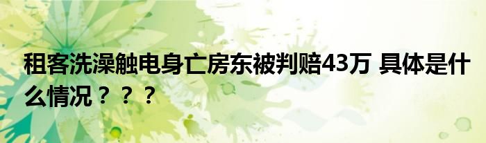【租客洗澡觸電身亡房東被判賠43萬】20日,一篇關于“租客洗澡觸電身亡房東被判賠43萬”的報道登上了各大搜索引擎的熱搜榜,在網上引起了眾多網友的關注和熱議,安全問題真的是不容忽視,防火防盜不如防電,對電是心有余悸,希望這樣的悲劇不再發生。