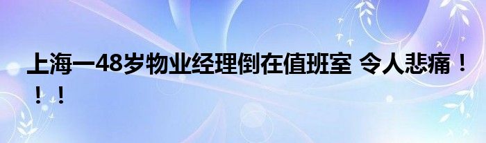 上海一48歲物業(yè)經(jīng)理倒在值班室