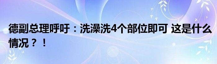 【德副總理呼吁:洗澡洗4個部位即可】#德副總理呼吁:洗澡洗4個部位即可#據報道,自2月24日,烏俄沖突全面爆發以來,當前已過去了一個多月之久。然而,4月19日德媒報道稱,因制裁俄羅斯,德國正面臨能源短缺的困境。在此,德副總理呼吁民眾少洗澡,他特別提到,洗澡時不要全身沖水,重點清洗四個部位即可。他說,這些“犧牲”能使俄政府的日子更加艱難。