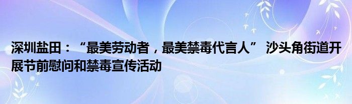 為進一步貫徹落實省、市、區禁毒委關于2022年禁毒攻堅年工作部署和安排,做好禁毒宣傳常態化工作,推進全民禁毒工作開展,沙頭角街道禁毒社工借助勞動節來臨的契機開展了“最美勞動者,最美城市禁毒代言人”禁毒宣傳活動。