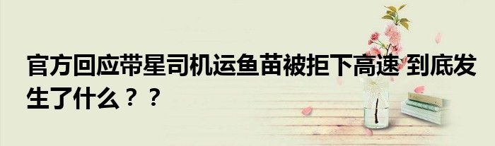 【官方回應帶星司機運魚苗被拒下高速】22日,一篇關于“官方回應帶星司機運魚苗被拒下高速”的報道登上了各大搜索引擎的熱搜榜,在網上引起了眾多網友的關注和熱議,因路過徐州行程碼帶星下高速遭拒,司機所運4500萬尾魚苗全死亡,損失慘重。損失應該由誰承擔?