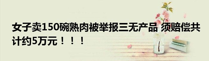 【女子賣150碗熟肉被舉報三無產品】近期各種出售自制食品被買家舉報三無產品的事件頻發,最近女子賣150碗熟肉被舉報三無產品,賠償5萬元的新聞引起了人們的熱烈討論,究竟是怎么回事呢?