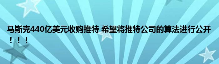 當(dāng)?shù)貢r(shí)間4月25日,社交媒體平臺推特公司接受了埃隆·馬斯克的收購協(xié)議。根據(jù)協(xié)議,馬斯克將以每股54.2美元,總計(jì)約440億美元的價(jià)格收購?fù)铺亍qR斯克當(dāng)天在推特上表示,希望該公司能夠繼續(xù)為人們提供表達(dá)不同意見的平臺。此外,馬斯克還表示希望將推特公司的算法進(jìn)行公開,以透明化內(nèi)容推薦和屏蔽的具體邏輯。