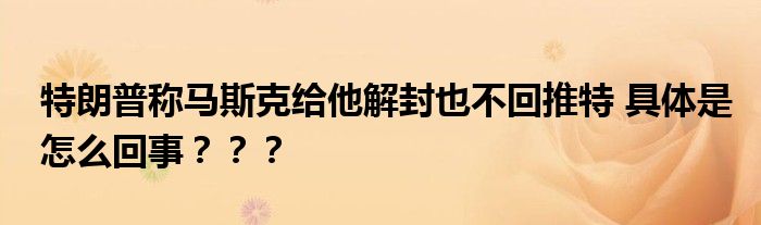 特朗普稱馬斯克給他解封也不回推特 具體是怎么回事???