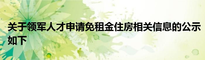 深圳市領軍人才免租金住房申請人名單及相關信息,詳見附件。