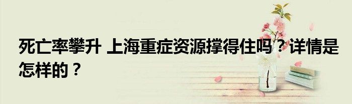 【#死亡率攀升 上海重癥資源撐得住嗎#】近期疫情來(lái)勢(shì)洶洶,上海尤為嚴(yán)重,當(dāng)?shù)匦蝿?shì)不容樂(lè)觀,此前,新增本土死亡48例。多位專(zhuān)家表示:上海當(dāng)下危重癥和死亡人數(shù)規(guī)模還將持續(xù)一段時(shí)間。死亡率攀升,上海重癥資源撐得住嗎?