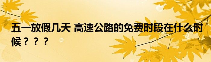 4月30日0時—— 5月2日24時,共5天。七座以下(含七座小型客車)通行收費公路免收通行費,具體免費時段為4月30日零時至5月4日24時。 高速公路免費通行以車輛駛離出口收費車道時間為準。