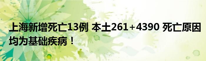 【上海新增死亡13例 本土261+4390】近期國內新冠肺炎疫情的形勢已經有所好轉,雖然上海的確診病例還在持續的增加,但是在整體趨勢上已經有所緩和。在這種緊要關頭必須嚴格落實防疫政策,疫情防控工作不容松懈。