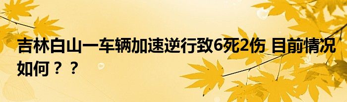 【吉林白山一車輛加速逆行致6死2傷】根據最新消息,5日,一篇關于#吉林白山一車輛加速逆行致6死2傷#的報道登上了各大搜索引擎的熱搜榜,在網上引起了眾多網友的關注和熱議,具體是什么情況?