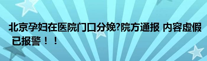 北京孕婦在醫院門口分娩?院方通報