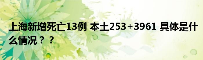 上海新增死亡13例 本土253+3961 具體是什么情況??