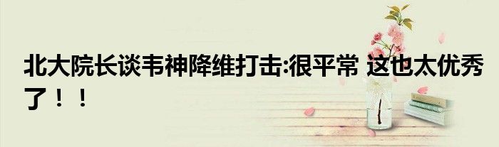 【北大院長談韋神降維打擊:很平常】據(jù)悉,90后數(shù)學(xué)天才韋東奕被稱為“韋神”,北大的“掃地僧”,16歲就拿下國際奧林匹克數(shù)學(xué)競賽金牌。近日,網(wǎng)傳韋東奕幫6人博士團(tuán)隊解決難題,網(wǎng)友們都震驚了,不愧是大神,這么厲害,這實力完全是碾壓啊!
