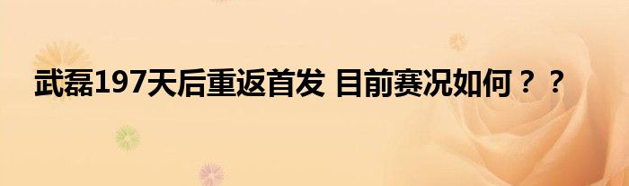武磊197天后重返首發