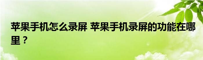 【蘋果手機怎么錄屏】現如今越來越多的人都喜歡使用蘋果手機,但是或許有很多人還不知道蘋果手機怎么錄屏,畢竟蘋果系統與安卓系統不一樣,功能的設置也不太一樣,蘋果手機錄屏的功能在哪里?