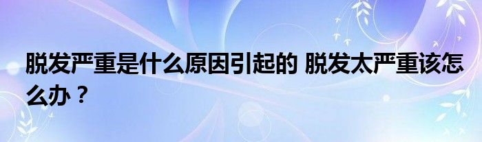 【脫發(fā)嚴重是什么原因引起的】脫發(fā)和禿頭一直被大家認為是中年大叔的代名詞,但現(xiàn)如今脫發(fā)人群逐漸年輕化!為什么在我國脫發(fā)現(xiàn)象那么的普遍?脫發(fā)嚴重是什么原因引起的?