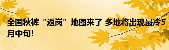 #全國秋褲“返崗”地圖來了#五一過后,很多北方地區的人們本來已是短袖打扮、甚至準備好了空調遙控器準備過夏天。然而冷空氣相繼來襲,大家不得不翻出已經收好的秋冬衣服。目前#全國秋褲“返崗”地圖來了#!
