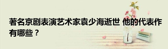 【著名京劇表演藝術家袁少海逝世】據悉,著名京劇表演藝術家袁少海先生,因病醫治無效,于2022年5月10日下午在北京逝世,享年77歲。袁少海生前有哪些知名代表作?大家對袁少海的了解有多少呢?