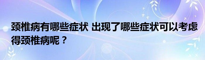 【頸椎病有哪些癥狀】頸椎病發病率高,是生活常見病,長期從事屈頸姿態的辦公族是該病的高發人群。那么出現了哪些癥狀考慮得頸椎病呢?