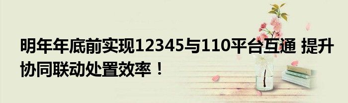 #明年年底前實現12345與110平臺互通#今日國辦印發的《關于推動12345政務服務便民熱線與110報警服務臺高效對接聯動的意見》引發國人關注!我們知道便民熱線和報警服務臺都能為廣大民眾提供幫助,但是在一些比較危急、或特殊的時刻,有民眾不知道撥打哪個電話,#明年年底前實現12345與110平臺互通#有助于提高工作效率,詳細報道如下!