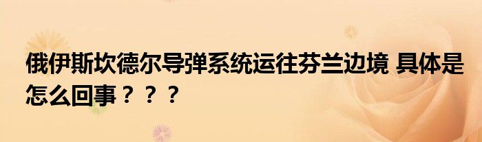 【俄伊斯坎德?tīng)枌?dǎo)彈系統(tǒng)運(yùn)往芬蘭邊境】當(dāng)今國(guó)際形勢(shì)日趨復(fù)雜,俄烏戰(zhàn)爭(zhēng)和沖突發(fā)生至今已經(jīng)兩個(gè)多月的時(shí)間了,我們都知道俄烏戰(zhàn)爭(zhēng)的導(dǎo)火索來(lái)自烏克蘭希望加入北約,而北約東擴(kuò)給俄羅斯造成壓力。近日有消息傳出芬蘭總統(tǒng)或?qū)⒓尤氡奔s,同時(shí)俄伊斯坎德?tīng)枌?dǎo)彈系統(tǒng)運(yùn)往芬蘭邊境,具體是怎么回事?