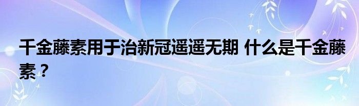 千金藤素用于治新冠遙遙無期