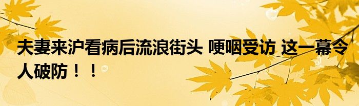 夫妻來滬看病后流浪街頭 哽咽受訪