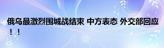 俄烏最激烈圍城戰(zhàn)結束 中方表態(tài)