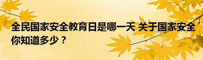【全民國家安全教育日是哪一天】在我們日常生活中,危害國家安全的案件時常發生,比如無意為外國間諜當向導而透密、軍迷在網站曬資料泄密等等,有時我們感覺日常的事情,也有可能危害國家安全。全民國家安全教育日是哪一天?