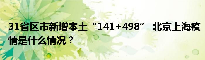 【31省區市新增本土“141+498”】3月份以來的這次疫情來勢洶洶,奧密克戎變異株傳播速度快、隱匿性強,這次疫情發生以來,經過多輪篩查,發現了相當數量的陽性感染者,防控形勢極其嚴峻。31省區市新增本土“141+498”,目前各地疫情是什么情況?