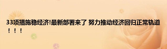 【33項措施穩經濟!最新部署來了】經濟的發展對一個國家的重要性不言而喻,不管是保證國家主權和領土完整的軍事建設 還是挺高國民生活水平的一系列政策的實施都離不開經濟。當前我國經濟下行壓力持續加大,許多市場主體經營困難。國務院日前召開常務會議,進一步部署穩經濟一攬子措施,努力推動經濟回歸正常軌道、確保運行在合理區間,具體都提到了哪些措施?