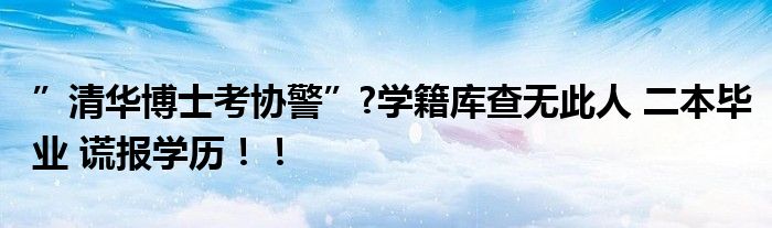 【"清華博士考協警"?學籍庫查無此人】近日,湖南長沙岳麓區一名學歷一欄寫著“博士”、專業一欄寫著“清華”的女應聘者引起網友廣泛關注,一度沖上微博熱搜榜第一名。“清華女博士”考協警事件調查結果:二本畢業,謊報學歷,學籍庫查無此人。