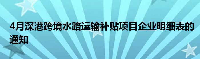 根據《深圳市商務局關于開展深圳市外貿優質增長扶持計劃(紓困政策—2022年3-6月深港跨境水路運輸補貼項目)申報工作的通知》有關安排,現將2022年4月深港跨境水路運輸補貼項目《企業已結關集裝箱明細表》和《企業符合申請補貼集裝箱匯總表》在深圳市商務局網站(網址:http://commerce.sz.gov.cn/)予以公示,公示期為2022年5月23日至5月31日,共7個工作日。現就有關事宜通知如下:
