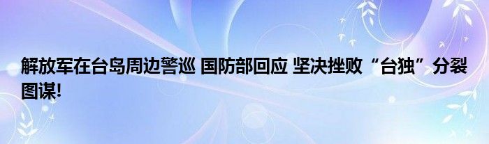 解放軍在臺(tái)島周邊警巡 國(guó)防部回應(yīng) 堅(jiān)決挫敗“臺(tái)獨(dú)”分裂圖謀!
