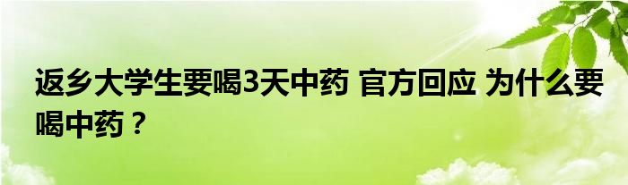 返鄉(xiāng)大學(xué)生要喝3天中藥 官方回應(yīng)