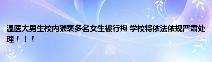 【溫醫大男生校內猥褻多名女生被行拘】5月29日,浙江溫州,網曝一男子在溫州醫科大學校園內,因猥褻女生被學生圍堵。隨后,有網友發帖稱該男子在校內多次用下體觸碰女性,引起了廣大網友的關注,目前是什么情況?