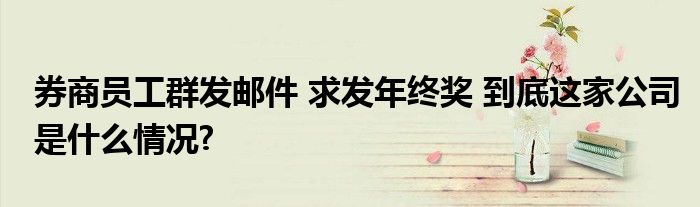 #券商員工群發郵件 求發年終獎#當員工在一間公司任職時,公司也需按照法律條例支付員工應得的工資,按照原先約定好的內容發放福利獎金,畢竟獎金也是生活的支撐,近日#券商員工群發郵件 求發年終獎#這一新聞就引發網友們的關注,究竟這家公司是什么情況?