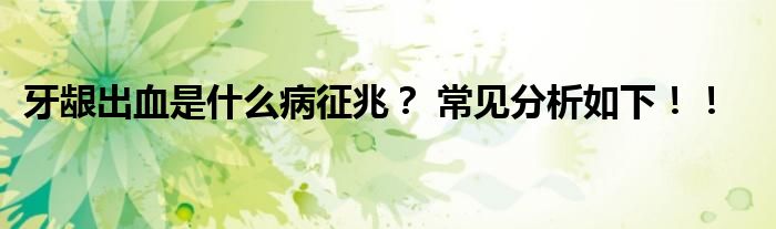 【牙齦出血是什么病征兆】如果是經常在刷牙的時候出現牙齦出血,通常是牙齦炎或牙周病的表現。但如果是牙齦經常出現自發,且量較大的出血,則可能是血液系統疾病,或其他全身疾病的征兆,常見分析如下: