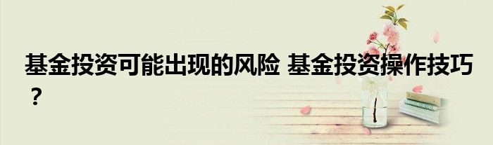【基金投資可能出現的風險】基金,廣義是指為了某種目的而設立的具有一定數量的資金。主要包括信托投資基金、公積金、保險基金、退休基金,各種基金會的基金。從會計角度透析,基金是一個狹義的概念,意指具有特定目的和用途的資金。我們提到的基金主要是指證券投資基金。