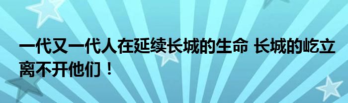 #一代又一代人在延續長城的生命#長城是中國體量最大的文化遺產,也是中華民族的象征,然而歷經千年風雨,有將近50%的長城已經或瀕臨消失。如今#一代又一代人在延續長城的生命#!正是他們的存在,這一古老而雄偉的建筑得以讓世界各地的人親眼見證,長城的維護需要靠他們!