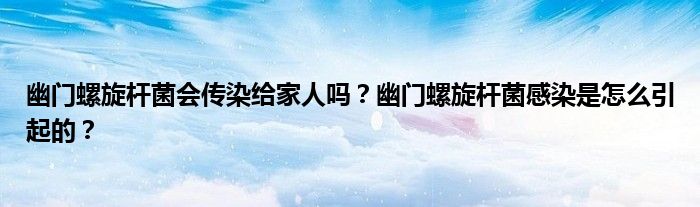 一般來說,幽門螺旋桿菌是會傳染給家人的。因為幽門螺旋桿菌的主要傳染途徑是糞口傳染、口口傳染,幽門螺旋桿菌除了存在于我們的胃中,口腔里面也是會有幽門螺旋桿菌存在的。所以,在與他人進行親密接觸時,如接吻或是喂食等,都有可能將這種細菌傳染給他人。