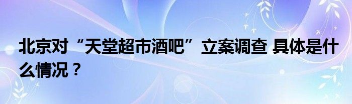 北京對“天堂超市酒吧”立案調查
