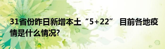 【31省份昨日新增本土“5+22”】3月份以來的這次疫情來勢洶洶,奧密克戎變異株傳播速度快、隱匿性強,防控不容松懈,近日確診人數呈下降趨勢,根據最新疫情消息,31省份昨日新增本土“5+22”,目前各地疫情是什么情況?