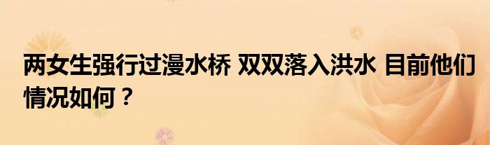 #兩女生強行過漫水橋 雙雙落入洪水#近段時間,國內(nèi)多個城市出線暴雨等極端天氣,持續(xù)多日的降雨引發(fā)嚴重的洪澇災(zāi)害,其中#兩女生強行過漫水橋 雙雙落入洪水#的新聞在網(wǎng)上熱傳,不少人擔心他們的安全狀況,目前情況如何?