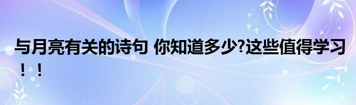 【與月亮有關的詩句】詠月詩在中國詩歌中占有獨特的地位,月亮可以說是古代詩人最偏愛的一個意象。首先是象征團圓,以月圓比喻人的團圓,以月缺比喻人的離別。那么,與月亮有關的詩句有哪些?