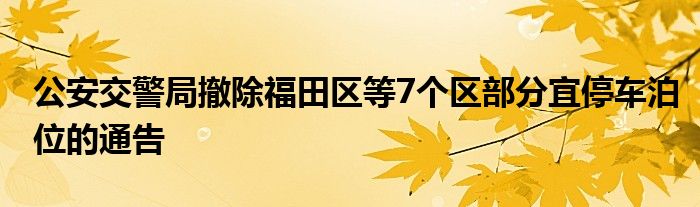 根據《深圳市機動車道路臨時停放管理辦法》有關規定,現將撤除上述7個區部分宜停車泊位情況通過市交通運輸局和市公安交警局門戶網站向社會公示,公示時間自2022年6月22日起至2022年7月21日止。