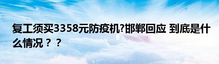 【復工須買3358元防疫機?邯鄲回應】近期,邯鄲市多地配備了身份證和健康碼查驗一體機,市民只需要刷身份證就可以完成快速查驗,精準助力常態化疫情防控。針對網民關于“邯鄲經開區要求購買防疫‘一體機’”的留言,邯鄲經濟技術開發區管理委員會回復稱,已將核實辦理情況告知網民,網民表示理解。